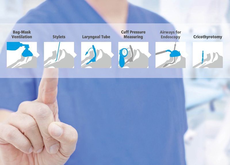 Estes produtos fazem parte dos algoritmos em vigor na gestão de via aérea e asseguram que o utilizador pode, facilmente e de forma segura, ventilar o paciente.